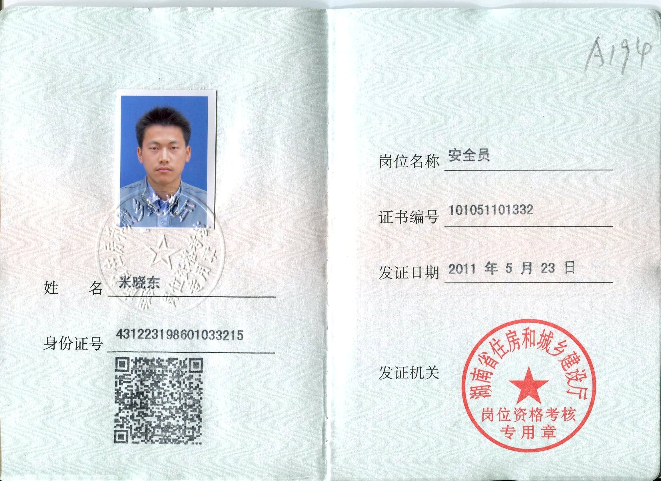 | 戶 口: 湖南省 懷化市 |